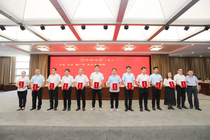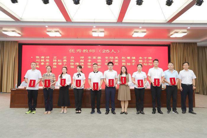 黨委書記張東良為從事教育事業30年的教職工代表頒發榮譽證書。副院長魏勇為優秀輔導員和優秀教學團隊代表頒發榮譽證書。紀委書記朱偉軍為優秀教育工作者代表頒發榮譽證書。副院長吉智為優秀教師代表頒發榮譽證書。