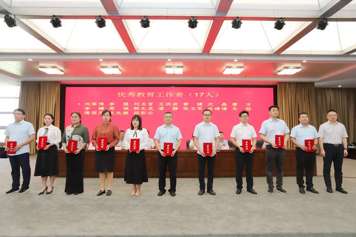 紀委書記朱偉軍為優秀教育工作者代表頒發榮譽證書