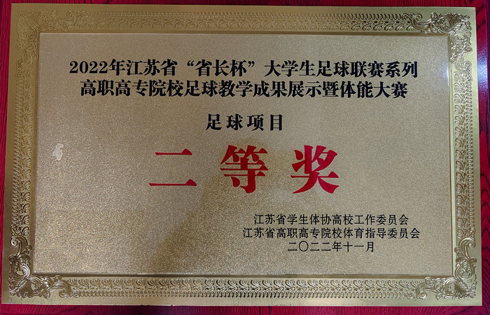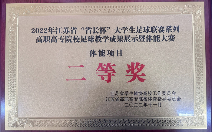 近日,在2022年江蘇省“省長杯”大學生足球聯賽系列高職高專院校足球教學成果展示暨體能大賽中體能項目上,我院參賽選手獲團體二等獎、足球項目獲團體二等獎。李勁同學在足球十部位顛球單項比賽中獲得一等獎,達斯坦·白山同學在足球打點單項比賽中獲得三等獎,王佳樂同學在體能男子全能王比賽中獲得二等獎。
