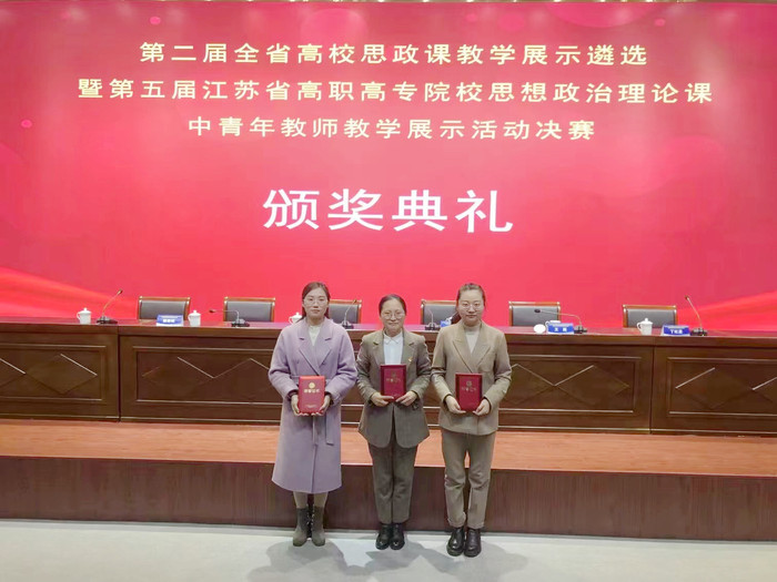 2月12日,我院三位思政課教師在第二屆全省高校思政課教學展示遴選暨第五屆江蘇省高職高專院校思想政治理論課中青年教師教學展示活動決賽中喜獲佳績。孟文文老師獲《思想道德與法治》組特等獎,王婷老師獲《習近平新時代中國特色社會主義思想概論》組一等獎,凌菲老師獲《毛澤東思想和中國特色社會主義理論體系概論》組二等獎,實現該比賽項目新突破。