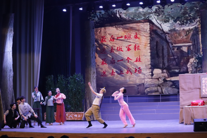 “最后一碗米,送去當軍糧;最后一尺布,送去做軍裝;最后一個娃,送他上戰場。”舞蹈詩劇精準地將淮海兒女英勇支前的精神傳遞給現場觀眾,讓師生更加深刻領悟淮海戰役精神,認識到人民群眾是中華民族的力量源泉和勝利之本!
