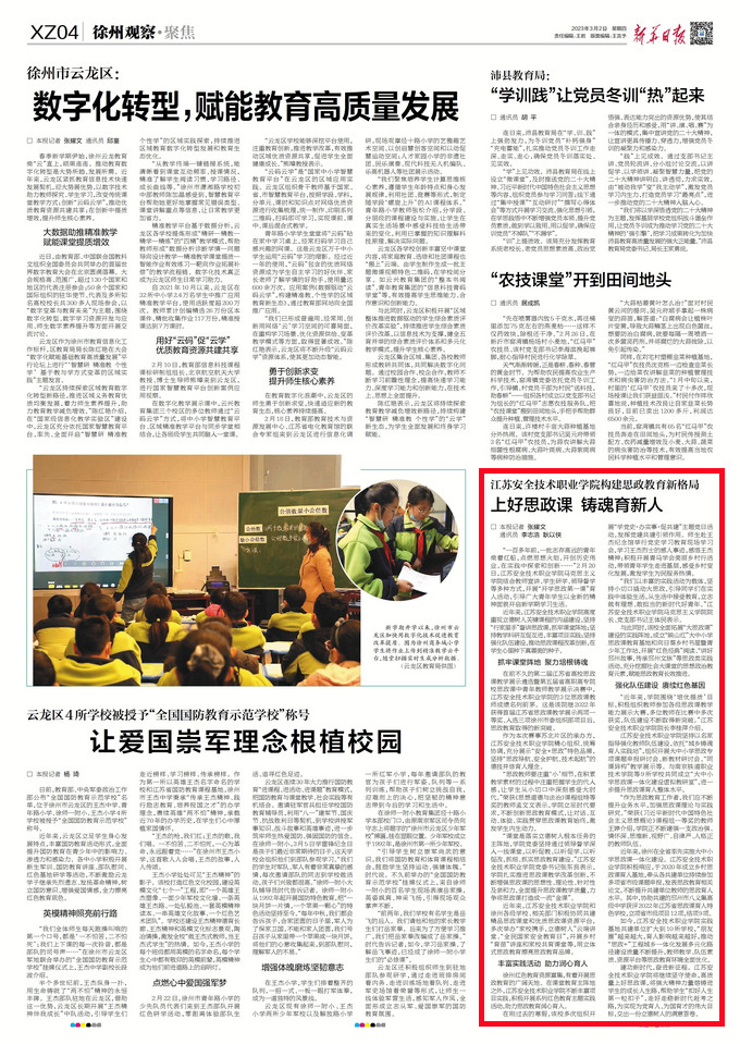近年來(lái),江蘇安全技術(shù)職業(yè)學(xué)院和徐州各級(jí)學(xué)校、相關(guān)部門積極協(xié)同共建精品思政課堂和優(yōu)質(zhì)思政課資源平臺(tái),多次舉辦“家校攜手,立德樹(shù)人”云端講堂、“全民國(guó)家安全教育日”,開(kāi)展鄉(xiāng)村“育苗”講座和家校共育課堂等,用立體式思政教育擦亮思政教育品牌。