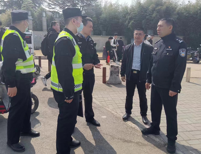 為確保校園秩序穩(wěn)定,全面筑牢校園安全防線,3月7日上午,徐州市公安局賈汪分局副局長(zhǎng)馬可來(lái)我院檢查指導(dǎo)校園安全穩(wěn)定工作,大泉派出所教導(dǎo)員王申元、學(xué)院安全保衛(wèi)處副處長(zhǎng)王義陪同檢查。