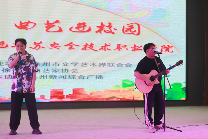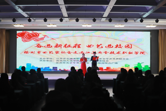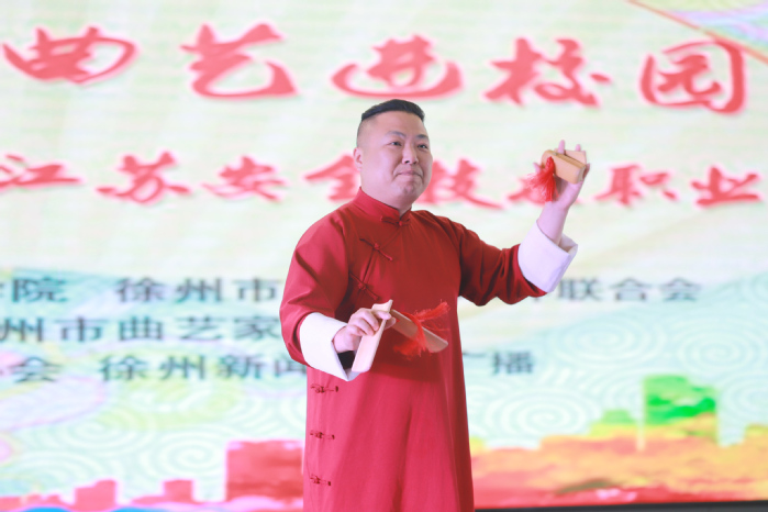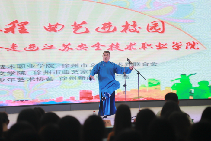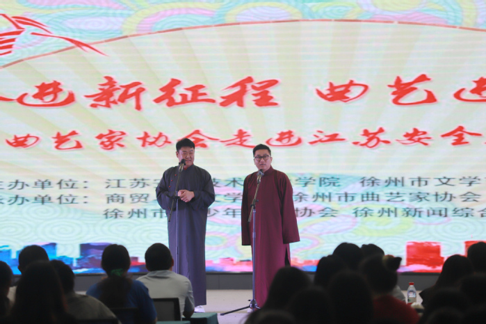 為進一步豐富學生校園文化生活,鼓勵大學生們主動傳承和弘揚中華優秀傳統文化,5月18日晚,我院在云龍校區成功舉辦《奮進新征程 曲藝進校園》主題演出。本次活動由我院和徐州市文聯共同主辦,商貿與人文學院、徐州市曲藝家協會、徐州市青少年藝術協會、徐州新聞綜合廣播共同承辦。學院黨委副書記成伯君、學工處和各二級學院相關負責同志以及200余名師生代表現場觀看了演出。