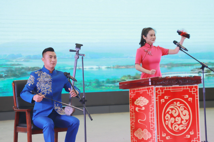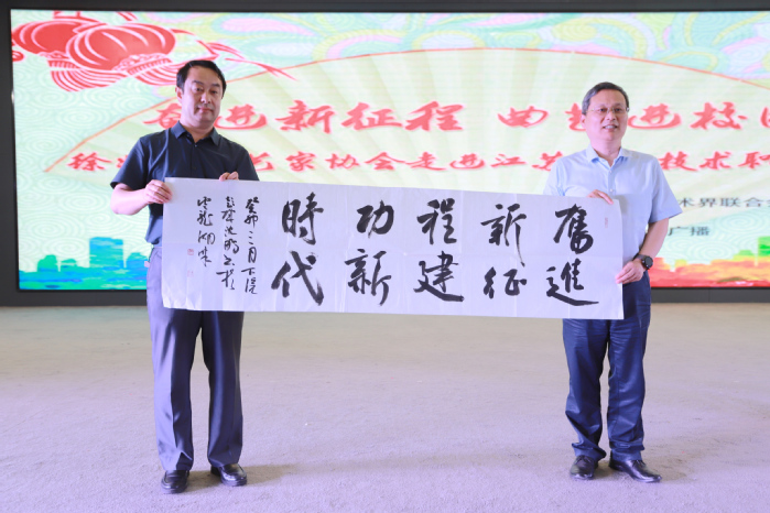 徐州市書法家協會副秘書長沈鵬向學校贈予《奮進新征程 建功新時代》書法作品,成伯君作為學院代表接受贈予。隨后,徐州市曲藝家協會的演員們給師生帶來了精彩紛呈的演出,傳統快板《看升旗》、傳統相聲《說學逗唱》、徐州地方特色琴書《向藍天》、山東快書《武松打虎》、相聲《咱爺爺》等節目輪番上演。演員們用生動風趣的語言、引人入勝的故事、扎實的曲藝基本功,給同學們帶來了一場視覺盛宴,我院學生也為演出活動奉獻了精彩的舞蹈。