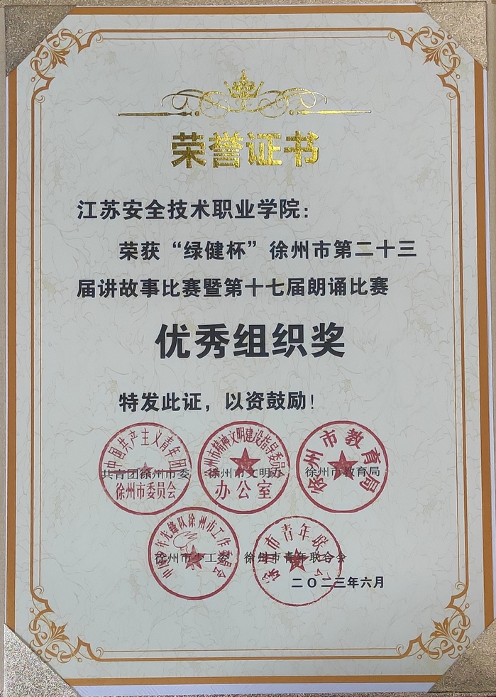 5月31日至6月9日,由共青團(tuán)徐州市委、徐州市文明辦、徐州市教育局、徐州市少工委聯(lián)合舉辦的“大國少年 未來有我”徐州市第二十三屆講故事比賽暨第十七屆朗誦比賽在徐州市青少年宮隆重舉行,我院在本次比賽中榮獲“優(yōu)秀組織獎”,參賽學(xué)生在不同組別中榮獲特等獎一項(xiàng)、一等獎兩項(xiàng)、二等獎兩項(xiàng)、三等獎兩項(xiàng)。