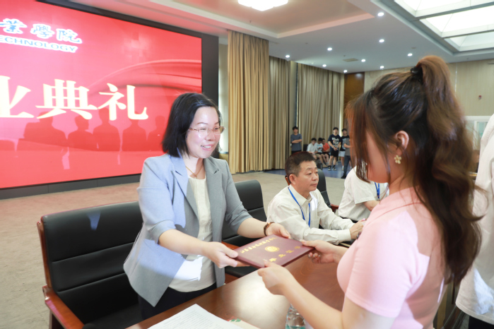黨委副書記成伯君宣讀優秀畢業生表彰決定,學院領導為優秀畢業生代表頒發榮譽證書,為畢業生代表頒發頒發畢業證書。
