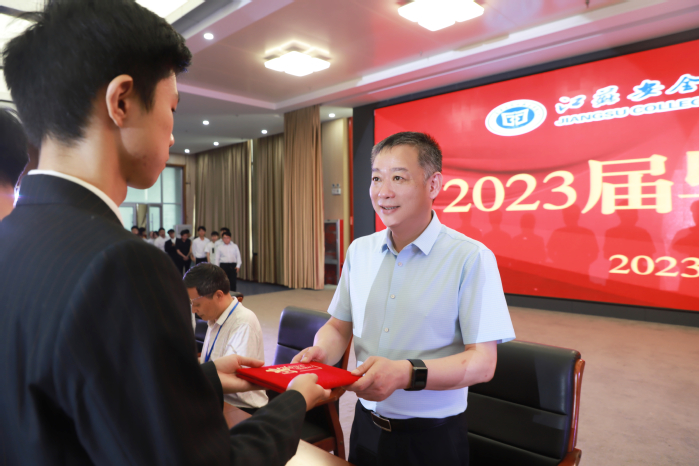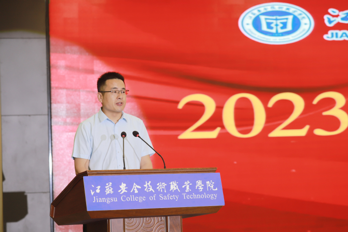 江蘇省技術能手、省技能大賽優秀教練宋宜振老師作為教師代表發言,表達了全體老師對學生的關心與殷切期望,祝愿全體畢業生畢業快樂,愿他們在未來的道路上前程似錦,一帆風順。