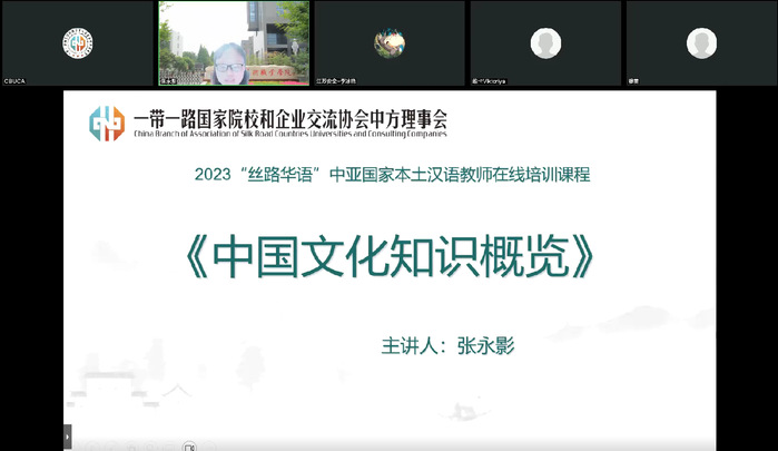 本次課程專門為中亞各國(guó)本土國(guó)際漢語教師系統(tǒng)設(shè)計(jì),共8個(gè)專題,歷時(shí)一個(gè)多月完成。《中國(guó)文化知識(shí)概覽》由我院基礎(chǔ)課教學(xué)部張永影老師進(jìn)行專題講授。課程從傳統(tǒng)節(jié)日及習(xí)俗、中國(guó)古代文化及名人、博物館及歷史建筑和中國(guó)書法繪畫及文學(xué)藝術(shù)多個(gè)層面展開講解,較好地幫助參加培訓(xùn)的漢語教師們深入了解和探索中國(guó)獨(dú)特的文化之美,全面掌握與中國(guó)文化相關(guān)的知識(shí),受到了參訓(xùn)教師的一致好評(píng)。