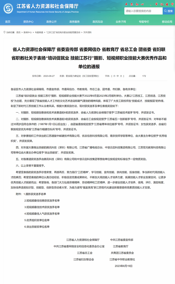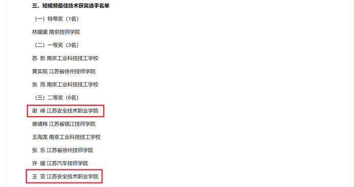 近日,“培訓促就業 技能江蘇行”攝影、短視頻職業技能大賽成績揭曉,機械工程學院教師謝峰、王亞獲短視頻最佳技術二等獎,根據大賽獎勵辦法,對攝影、短視頻創意類和技術類賽道前6名獲獎選手,由省人力資源和社會保障廳授予“江蘇省技術能手”稱號。