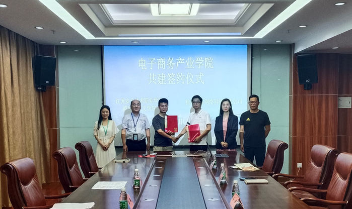 7月6日,商貿與人文學院與徐州朋客網絡科技有限公司簽訂了“校企合作—共建電子商務產業學院”框架協議。徐州朋客網絡科技有限公司總經理杜鵬、副總經理趙江浩,我院教務處副處長王郝,商貿與人文學院副院長王昌福、潘靜,電子商務專業教研室主任劉永偉參加活動。
