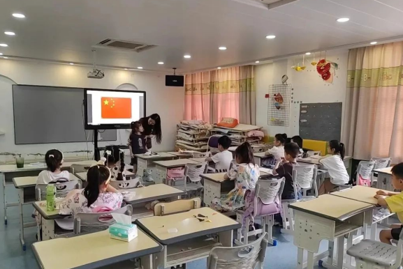 在新沂市愛吉兒幼兒園的暑期社會實踐中,隊員們通過圖片、視頻、故事等形式向學生們介紹了很多紅色故事,讓新時代的兒童更加了解我們的國家,熱愛我們的祖國,在她們心中種下紅色精神的種子。隊員們還組織孩子們拍攝了主題視頻,表達自己對祖國的熱愛。