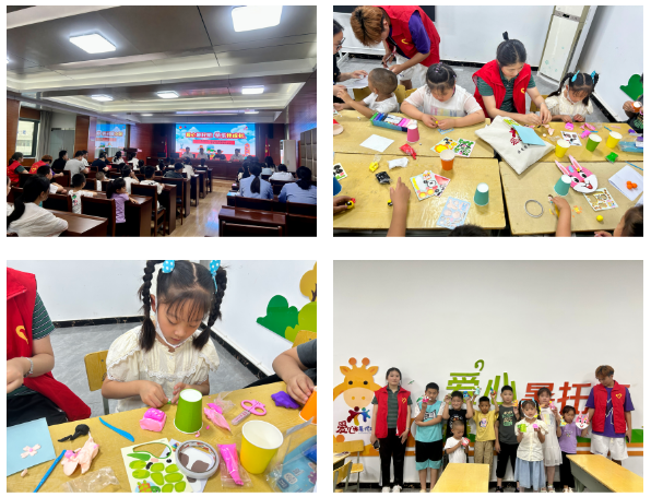 為有效緩解暑期“看護難”問題,讓孩子們度過一個安全、快樂、有意義的暑假。工業安全與職業健康學院“青春有我 志愿同行”暑期社會實踐團隊聯合豐縣團縣委、中陽里街道共同開展2023年“心有所‘暑’ 不負所‘托’”愛心暑托班社會實踐活動。活動現場,志愿者們利用紙杯、超輕黏土、貼紙畫等常見的材料,帶領孩子們進行手工制作,讓孩子們通過自己的構思、想象,利用一些簡單的工具進行創作與表現,以此提高孩子們的想象力、創造力、觀察力、注意力,培養他們認真、耐心、細致、互助的好習慣。活動中,愛心暑托班教師代表、青年志愿者代表還分別進行了交流發言。