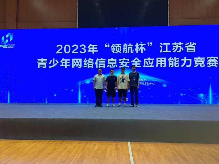 在9月3日落下帷幕的由江蘇省教育廳、江蘇省委網信辦聯合主辦的2023年“領航杯”江蘇省第八屆青少年網絡信息安全應用能力競賽(高校組)決賽上,我院“提名者”網絡安全戰隊何政敏、牟凌云、賈傳好三名同學榮獲本次決賽第一名。此次決賽在南京博覽中心舉行,賽項為三人團體賽的賽制,采用了奪旗賽單兵作戰模式,時長4小時,主要考查學生應急響應、密碼學、web安全、信息內容安全、二進制等能力和技能。