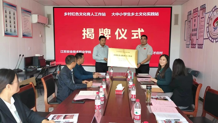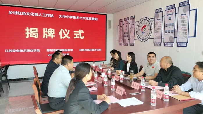 活動中,邳州市官湖高級中學“江蘇省高級中學課程思政基地”項目和我院的“徐州市大中小學思政課一體化實踐基地”共同依托碾莊鎮(zhèn)才莊村豐富的“鄉(xiāng)村紅色文化”資源,舉行“鄉(xiāng)村紅色文化育人工作站”和“大中小學生鄉(xiāng)土文化實踐站”揭牌儀式。