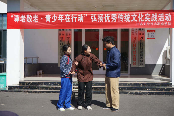 為大力弘揚中華優秀傳統文化,倡導社會關注老年人的福祉,促進跨代交流,增強大中小學生在家庭中對長輩的關心,創新思政課實踐育人路徑。重陽節來臨之際,我院聯合邳州市官湖高級中學、邳州市八義集高級中學、邳州市超時紅軍小學在邳州市碾莊鎮才莊村開展“尊老敬老·青少年在行動”專題“大思政課”實踐活動。