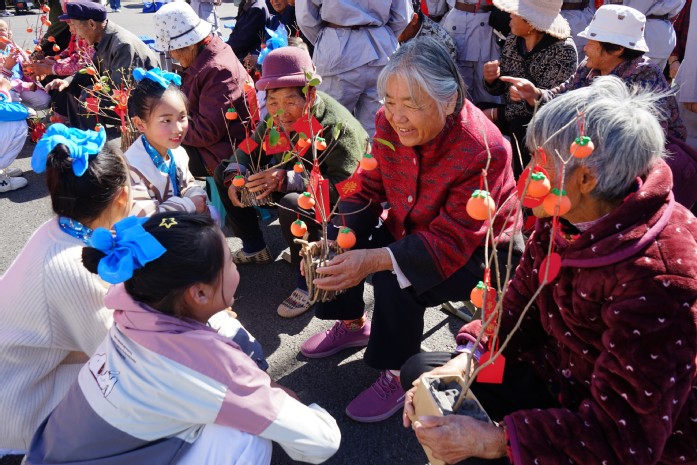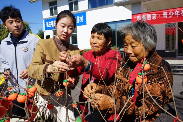 互動環節,我院大學生與老年人一起制作《柿柿如意》手工作品,送去重陽節的祝福和美好的祝愿。