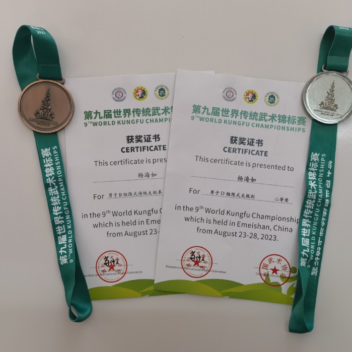 8月25日,第九屆世界傳統武術錦標賽在四川省峨眉山市開賽。本次比賽以“慧定峨眉?武動世界”為主題,由國際武術聯合會、中國武術協會主辦,共有53個國家和地區的6649名運動員和教練員參加。我院楊海如老師通過各級選拔賽,代表江蘇省隊參賽,以精湛的技術和扎實的功底,榮獲陳式太極劍二等獎、陳式傳統太極拳三等獎。