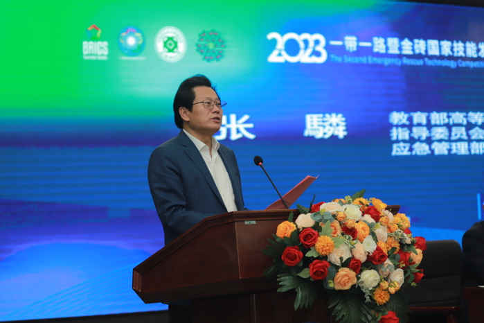 中國職業安全健康協會黨委副書記、副理事長、賽事總顧問王浩水作總結講話。王浩水指出,舉辦2023“一帶一路”暨金磚國家技能發展與技術創新大賽之第二屆應急救援技術賽,是高效落實習近平總書記“一帶一路”倡議的具體行動和良好實踐。各組織單位、承辦院校要進一步探索應用型、復合型安全應急人才培養工作的方法路徑和科技支撐,更加深刻領悟習近平總書記關于安全生產重要論述的根本立場、核心觀點和基本方法,牢固樹立“大安全、大應急”理念。