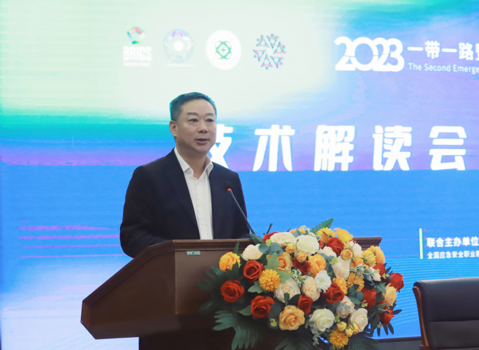 中國職業安全健康協會黨委委員、副理事長、賽事總指導楊玉洲致辭。楊玉洲指出,希望能夠通過金磚大賽的“窗口”作用吸引國內外優秀資源共同參與到賽事組織、實施當中,加快推動應急產業各領域人才培養、科技創新和成果轉化,為國家應急體系構建和應急產業升級提供人力資源保障,培育經濟增長新動能,助推中國標準“走出去”。