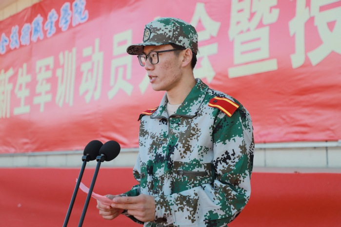 承訓教官孔祥群代表全體教官發言,他表示,在軍訓過程中全體教官將認真做好軍事訓練工作,嚴格要求,按綱施訓,以良好的精神風貌、扎實的軍事素養,確保軍訓期間各項工作安全、順利、圓滿完成。