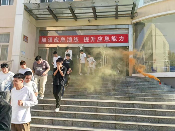 開展消防應(yīng)急疏散演練。安保處和學工處聯(lián)合開展消防應(yīng)急疏散演練,各二級教學院部協(xié)同配合。疏散演練過程中,模擬火災(zāi)現(xiàn)場,在宿舍、教室內(nèi)燃起煙霧,響起警報,參加疏散演練的學生在應(yīng)急疏散演練小組工作人員的引導(dǎo)下,正確使用濕毛巾掩住口鼻,彎腰低姿迅速有序撤離。整個演練過程緊張有序,老師和學生們行動迅速、配合默契,達到了預(yù)期目的。