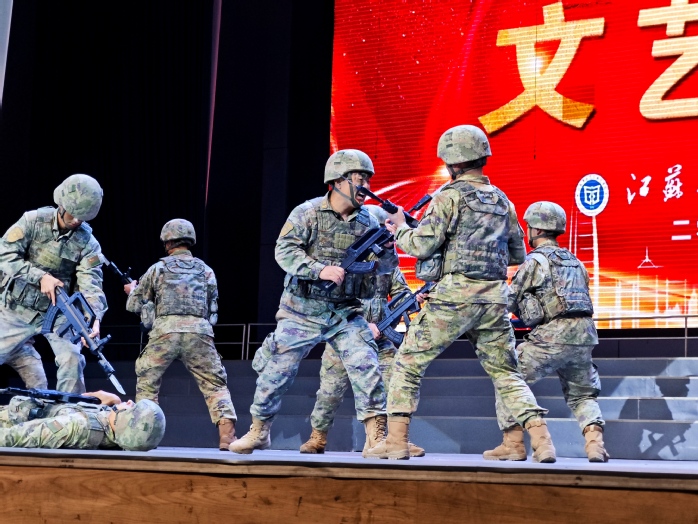 大氣磅礴的開場鼓舞《中國龍》拉開了演出的序幕。朗誦《新征程,新一步》、舞蹈《虞歌》《扇舞風華》、小合唱《一路生花》、民族舞《歡樂地跳吧》充分展現了蘇安院青年學子的風采。軍訓教官帶來的刺刀操《當那一天來臨》將現場氣氛點燃,將演出推向第一個高潮,教官們刺、擊、劈、踢動作連貫如行云流水,盡顯瀟灑英姿。伴隨著輕快的音樂旋律,學院機器人社團帶來的《機器人的舞臺夢》,機器人一板一眼的舞蹈動作吸引了臺下觀眾的眼光。心理情景劇《郝脫不拖啦》講述了大學生校園生活的心路歷程。合唱《在銀色的月光下》、女生二重唱《新貴妃醉酒》、歌曲《長城永在我心上》用歌聲唱響“心聲”。深情合唱《我的蘇安》把整場演出推向新的高潮,引發了全場觀眾深切共鳴,為本次文藝演出畫上了一個圓滿的句號。