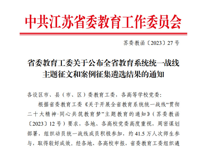 近日,省委教育工委公布全省教育系統統一戰線主題征文和案例征集評選結果,我院多項作品獲得表彰。學院院長、民盟盟員李桂萍《愿做一束光 散發教育的光芒》被評為“建功立業新時代”黨外人士典型事跡。黨委統戰部報送的《“三個同心”打造黨外知識分子思想政治工作新高地》榮獲“凝‘知’聚力新征程”黨外知識分子思想政治工作典型案例。