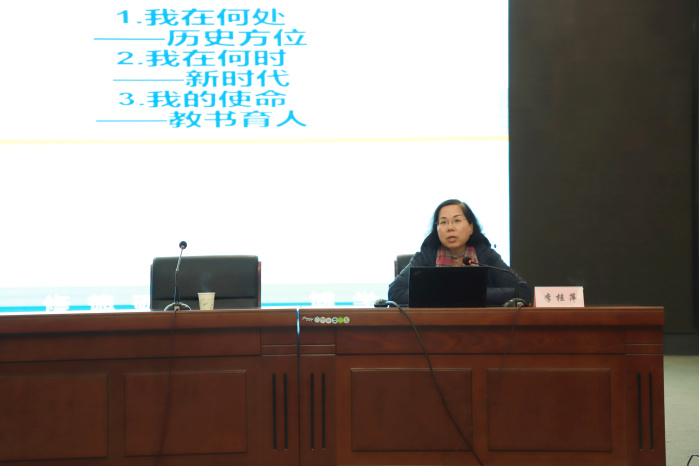 李桂萍就《規劃·實踐·反思:教師專業成長的路徑探索》開展了專題講座,從“我是誰?”、“做什么?”、“怎么做?”三個問題,引出“目標論”、“實踐論”和“方法論”,引導教師聚焦教學、科研、實踐,分享了材料撰寫方法及教學研究經驗。她指出,教師需要善于把握政策要點,聚焦關鍵目標,以“早、準、專”的態度,精準定位研究方向,深耕研究內容,發揮團隊精神,力爭實現從跟跑到并跑,最終實現領跑的目標。