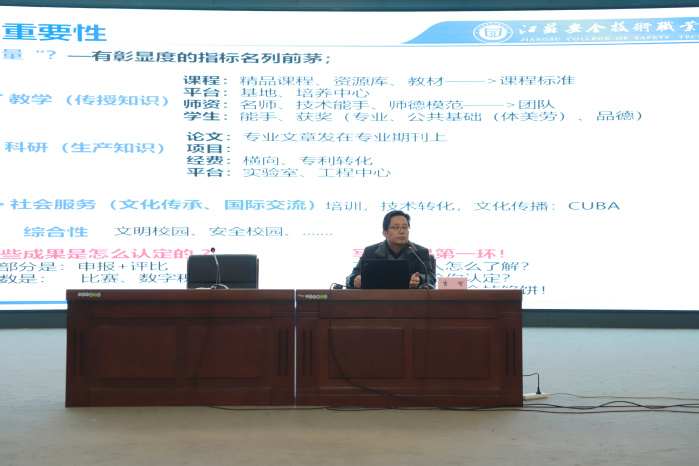 二級院部相關負責同志以“專業發展與院部謀劃”為主題,圍繞專業發展現狀、課程建設、項目建設和師資隊伍建設等對部門工作作了匯報,介紹了未來專業發展的思路、工作的主要任務和重點。