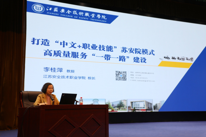 活動上,李桂萍院長應(yīng)邀擔(dān)任“絲路華語”國際漢語教學(xué)職業(yè)能力大賽決賽的評委,并作題為《打造“中文+職業(yè)技能”蘇安院模式,高質(zhì)量服務(wù)“一帶一路”建設(shè)》主旨報告。李桂萍表示,學(xué)院以建設(shè)中國特色文化國際傳播教育基地和“中文+職業(yè)技能”海外培訓(xùn)中心為契機(jī),通過特色課程建設(shè)、特色基地建設(shè)和特色專業(yè)輸出等路徑打造出“漢語學(xué)習(xí)+文化推介+技能培訓(xùn)”蘇安院模式。她指出,學(xué)院依托專業(yè)優(yōu)勢和師資優(yōu)勢,結(jié)合長城汽車等“走出去”企業(yè)全球發(fā)展化戰(zhàn)略,與“一帶一路”共建國家和地區(qū)優(yōu)質(zhì)院校合作,按需定制,培養(yǎng)“中文+職業(yè)技能”本土化技術(shù)技能人才。她談到,“中文+職業(yè)技能”教育需要兄弟院校抱團(tuán)出海,根據(jù)當(dāng)?shù)禺a(chǎn)業(yè)供需關(guān)系,結(jié)合“走出去”企業(yè)發(fā)展要求,結(jié)合各自優(yōu)勢,輸出符合本土化需求和具有國際影響力的專業(yè)標(biāo)準(zhǔn)、課程標(biāo)準(zhǔn)、教學(xué)資源,共享中國職業(yè)教育模式,打造中國職教國際品牌。