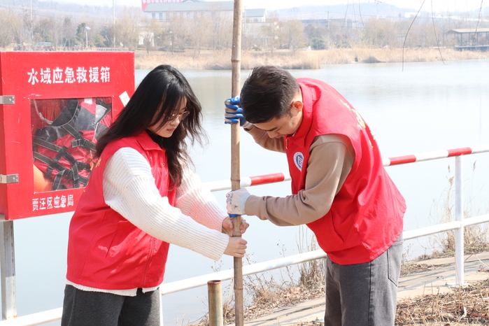【開展“大手牽小手,防溺不松手”志愿服務活動】 智能制造與應急裝備學院聯合賈汪區藍天救援隊開展“大手牽小手,防溺不松手”志愿服務活動,志愿者協同救援隊隊員們共同制作了百余根應急“救生竹竿”,并對賈汪主城區的相關水域河道進行巡查,及時補充安置“救生竹竿”,有效筑牢生命安全防線。
