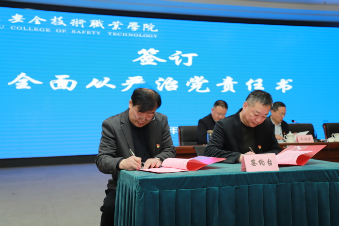 會上,張東良與工業安全與職業健康學院副書記張成東,院長李桂萍與黨委委員、人事處處長佟廷友,作為代表簽訂了《深化全面從嚴治黨落實黨風廉政建設責任書》。