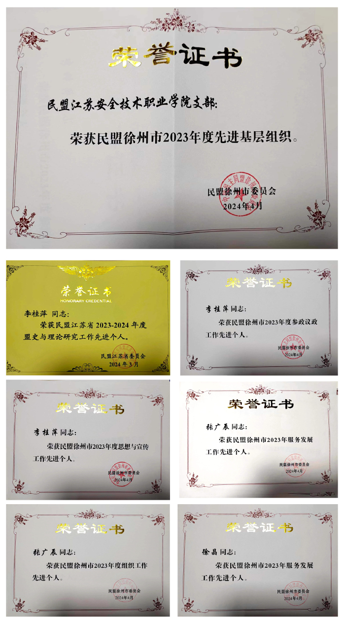 民盟蘇安院支部榮獲民盟徐州市2023年度先進基層組織,支部多名盟員受到表彰。