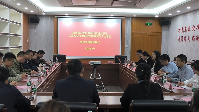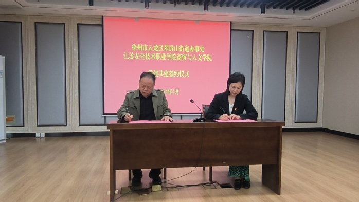 進一步學習貫徹習近平新時代中國特色社會主義思想,充分發揮學院教育資源優勢,增強黨員師生服務地方、服務基層的意識,擴大學院工作輻射面和影響力,4月23日,商貿與人文學院黨總支與云龍區翠屏山街道辦事處黨工委簽署“黨建共建”協議,通過黨建共建加強校地合作,以高質量黨建引領事業高質量發展。