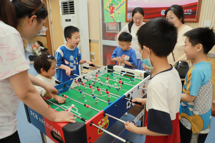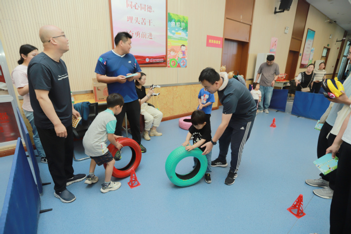 活動在歡快的音樂聲中拉開帷幕,“頭戴籃筐”“眼疾手快”“桌面足球”“穿過封鎖線”等十個精心設計的親子游戲項目輪番上演。家長和孩子們都積極踴躍地參與到各項活動中,現場洋溢著家長和孩子們的歡聲笑語,熱鬧又充滿溫情。一張張純真的笑臉,一個個活潑的身影,萌娃們領取到心儀的禮品和零食,笑容洋溢,歡呼雀躍。