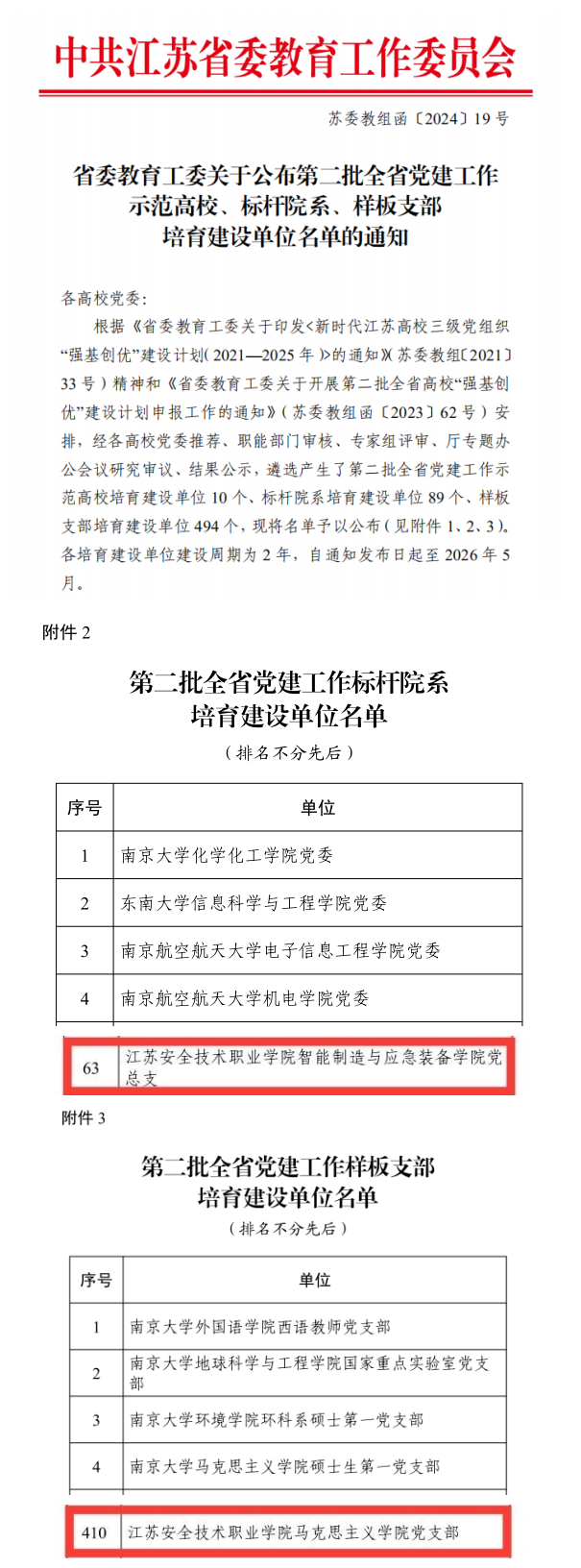 近日,江蘇省委教育工委公布了第二批全省黨建工作“標桿院系”“樣板支部”培育創建單位名單。我院智能制造與應急裝備學院黨總支獲批“標桿院系”培育創建單位,馬克思主義學院黨支部獲批“樣板支部”培育創建單位。