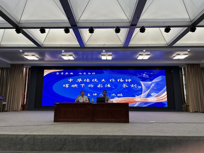 講座以《中華傳統文化精神輝映下的書法、篆刻》為主題,沈鵬老師通過展示一系列書法篆刻作品,引領師生們深入領略中華書法的獨特魅力。書法作品或遒勁有力、或飄逸靈動,每一筆都凝聚著書法家的心血和智慧,將中國書法的神韻表現得淋漓盡致。篆刻作品則精巧別致、意境深遠,每一方都蘊含著篆刻藝術家的深厚功底和獨特見解。