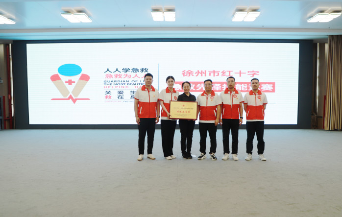 6月22至23日,學院聯合徐州市紅十字會、總工會、人力資源和社會保障局、教育局、衛生健康委員會共同舉辦2024年徐州市“關愛生命 救在身邊”急救先鋒技能競賽。我院作為在徐高校唯一一支代表隊與來自徐州縣(市)區10支專業紅十字救援隊同臺競技。市人大常委會副主任、紅十字會會長李燕,學院黨委書記張東良,市總工會二級調研員王建民,市人力資源和社會保障局四級調研員王愛華等領導蒞臨大賽現場并為獲獎選手和團體頒獎。