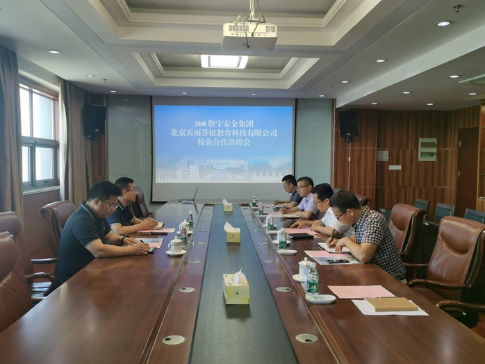 6月26日,360數字安全集團教育行業總經理李強、北京天雨喬松教育科技有限公司營銷總監彭璐一行到學院開展校企合作洽談。副院長吉智出席洽談會,產教融合辦公室及網絡與信息安全學院相關負責同志參加洽談。