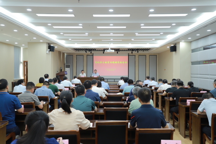 為進一步推動黨紀學(xué)習(xí)教育走深走實,引導(dǎo)黨員干部學(xué)紀、知紀、明紀、守紀,不斷鞏固風(fēng)清氣正干事創(chuàng)業(yè)良好校園政治生態(tài),6月28日,學(xué)院邀請徐州市紀委常委、市監(jiān)委委員姚念璞在云龍校區(qū)開展黨紀學(xué)習(xí)教育專題輔導(dǎo)講座。在校院領(lǐng)導(dǎo)、全體中層及以上干部、教師黨支部書記及組織員參加講座。講座由紀委書記、監(jiān)察專員朱偉軍主持。