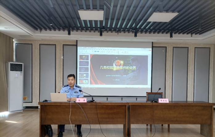 徐州市內(nèi)保支隊(duì)支隊(duì)長馮濤為全體輔導(dǎo)員作“突發(fā)事件應(yīng)急處置”專題講座。他結(jié)合具體案例,從高校安全穩(wěn)定面臨八個(gè)方面的主要風(fēng)險(xiǎn)、加強(qiáng)高校安全穩(wěn)定工作的五項(xiàng)對策措施、高校涉穩(wěn)事件的處置方面進(jìn)行講解,進(jìn)一步提升了輔導(dǎo)員預(yù)防和處置突發(fā)事件能力水平。