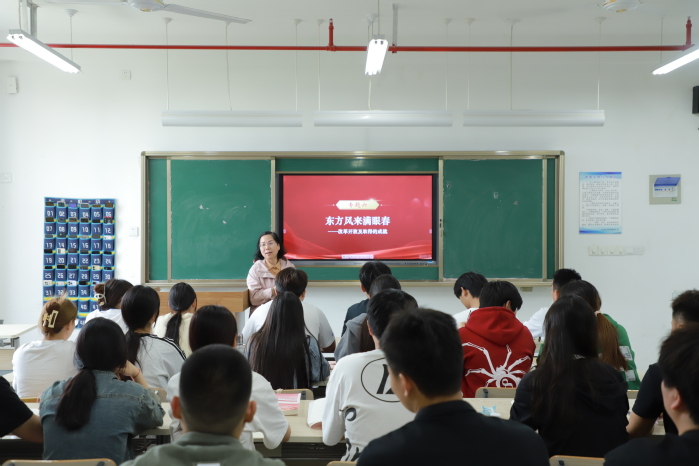 院長李桂萍以《東方風來滿眼春—改革開放及取得的成就》為題為2022級云計算3班同學講授專題思政課。他用數據、案例、視頻講解黨的十一屆三中全會召開以來,我國發生的翻天覆地的變化,引導學生認識到“實踐是檢驗真理的唯一標準”,并及時融入課程思政點“越是偉大的事業,越充滿艱難險阻,越需要解放思想、開拓創新。”最后,她寄語同學們:站在新的歷史起點,我們正大踏步朝著民族復興的第二個百年奮斗目標前進,蘇安院的學子們要賡續紅色基因,爭做愛國奉獻的時代新人;要堅定理想信念,聽黨話、跟黨走,做讓黨放心的時代新人;要用扎實的技能為“春天的故事”增光添彩,將個人成長與國家安全發展緊密相連。