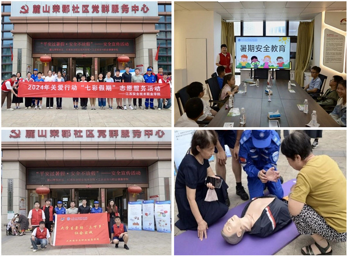 【平安“暑”護 “救”在身邊】7月15日,工業安全與職業健康學院“蘇安“暑”護”暑期社會實踐團走進徐州市泉山區火花街道麓山榮郡社區,為社區居民開展應急救護知識科普和安全知識宣傳。“蘇小安”應急救援志愿服務隊隊員為社區居民詳細介紹心肺復蘇、AED設備使用方法、海姆立克急救法等操作步驟,并通過現場演示加深了社區居民對急救知識的理解。演示結束后,團隊成員針對暑假期間可能發生的安全事故,對社區學生進行了安全知識宣傳活動。