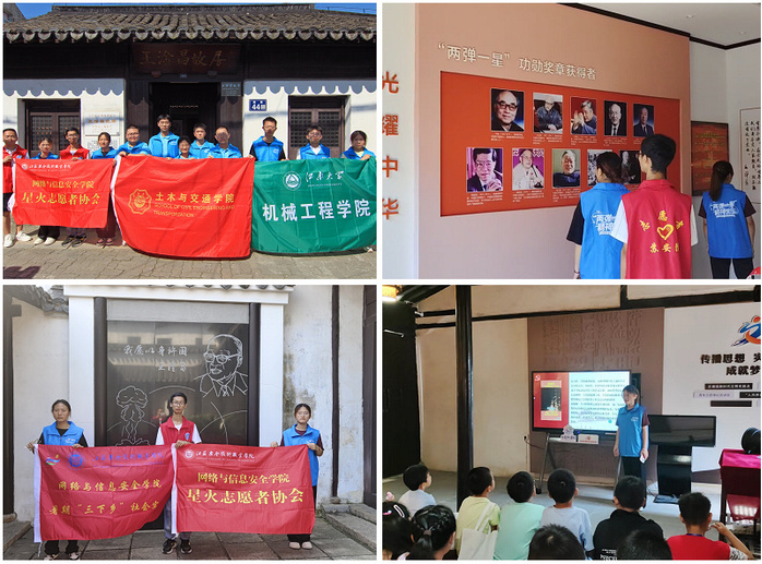 在工作人員的耐心細致地指引下,隊員們參觀了王淦昌先生的生平展覽。通過珍貴的歷史照片和遺物,深切感受到了王淦昌先生為國家科技事業和國防建設所作出的卓越貢獻,以及他無私奉獻、勇于探索的科學精神。參觀結束后,三校實踐團成員共同學習探討。活動期間,實踐團成員們用生動有趣、通俗易懂的方式在王淦昌故居面向蘇州市多彩假期的兒童們舉辦了一場別開生面的“兩彈一星”精神宣講會。