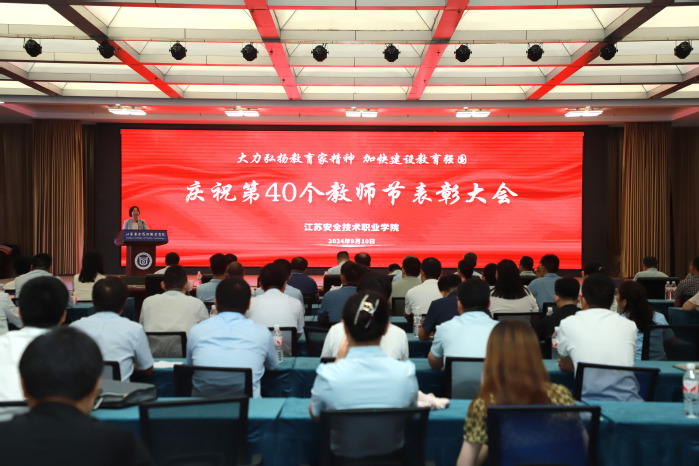 大力弘揚教育家精神,加快建設教育強國。今年的9月10日是我國第40個教師節,為表彰先進,激勵廣大教師以更加奮發有為的精神狀態投身教育強國建設,學院于今日下午在云龍校區隆重舉行慶祝第40個教師節表彰大會。院領導張東良、李桂萍、成伯君、魏勇、任國興出席會議,中層以上領導干部、受表彰的優秀個人和集體以及教師代表齊聚一堂,共同慶祝屬于每一名教師的節日。大會由院長李桂萍主持。
