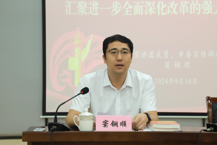 9月10日,學院在云龍校區召開學習貫徹黨的二十屆三中全會精神市委宣講團報告會。市委宣講團成員、市委宣傳部副部長竇銅順來學院宣講。院領導、中層干部、教師黨支部書記參會學習。