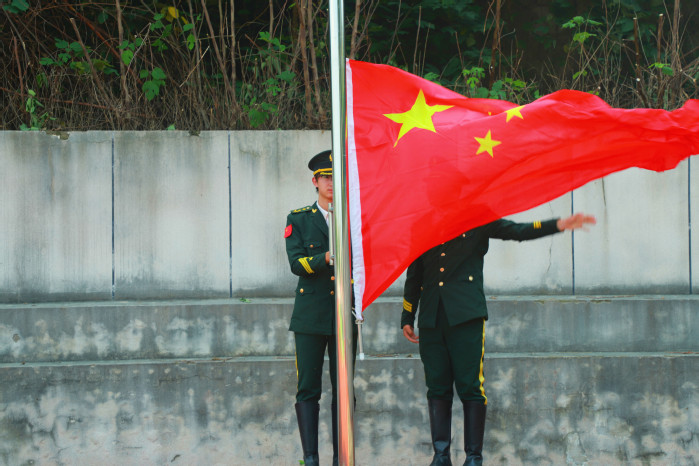 張東良、李桂萍為軍訓(xùn)團(tuán)授旗,部隊領(lǐng)導(dǎo)為軍訓(xùn)營授旗。