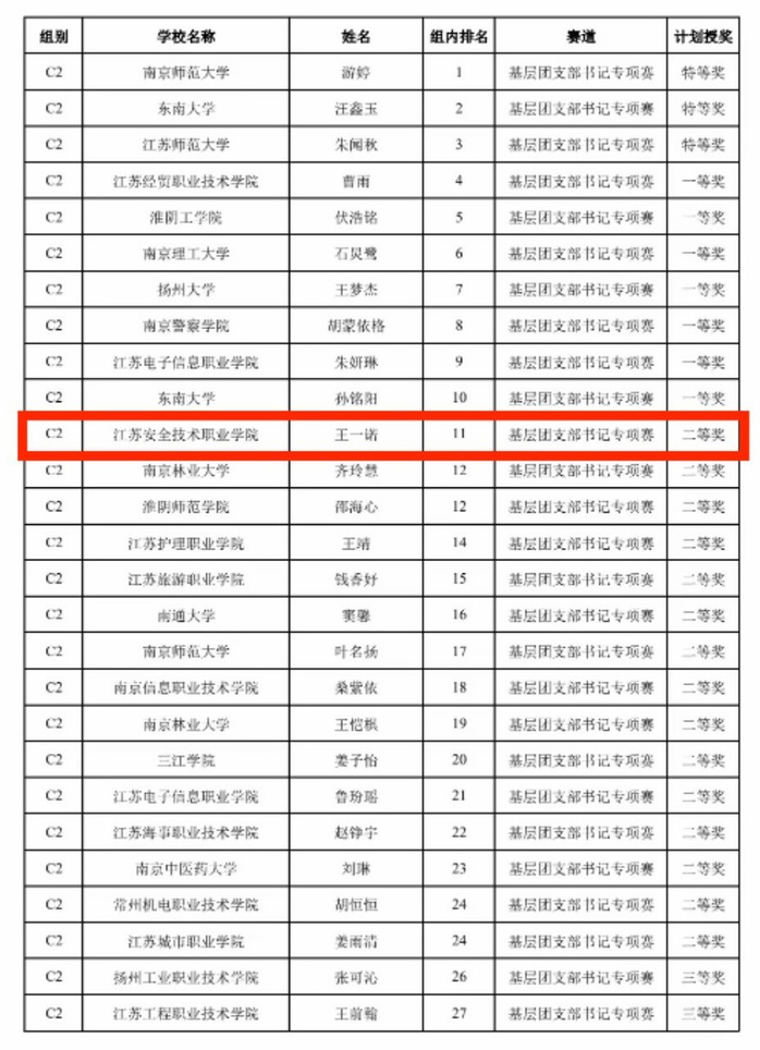 近日,由共青團江蘇省委聯合中共江蘇省委教育工委、新華日報社、江蘇省學生聯合會共同主辦的第四屆江蘇高校百校萬名團干部思政技能大比武系列比賽在南京林業大學落下帷幕。全省共有200余位來自本專科不同高校的師生團干部、青年教師入圍決賽。在基層團支部書記專項賽中,網絡與信息安全學院李培雋老師指導的王一諾同學獲得二等獎。這是我院在此項賽事中取得的最好成績,也是首次有我院學子成功入圍現場決賽。