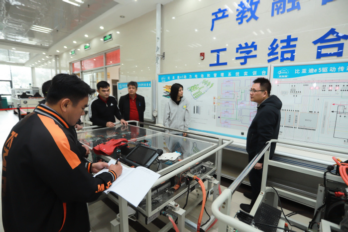 培訓為期8天,主要圍繞新能源汽車技術相關理論及實訓課程展開,并組織了企業進校園、文化參訪等活動,來華老師們深度了解了中國新能源汽車發展現狀、人才培養模式和專業課程設置以及校企融合等情況,沉浸式體驗中國濃厚的歷史文化底蘊和蓬勃的現代化發展景象。培訓期間還舉辦了“中泰教師工作坊新能源汽車技術課程建設研討會”,雙方就《新能源汽車技術》課程分析、課程標準展開討論,就活頁式教材編寫給出了建設性意見和建議,為《新能源汽車技術》本土化課程輸出提供了有力支撐。